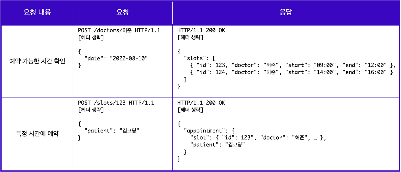 엔드포인트 : /slots/123 (slots라는 리소스의 123이라는 id를 가진 리소스가 변경됨)