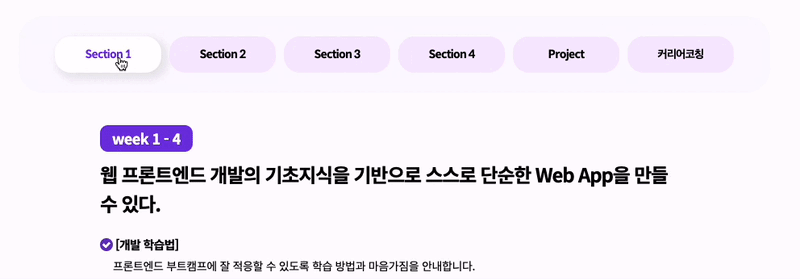 ※각 섹션의 이름이 너무 길지 않아야 하고, 구분이 명확해야하면, 현재 어떤 섹션을 보고 있는지 표시해주어야한다.